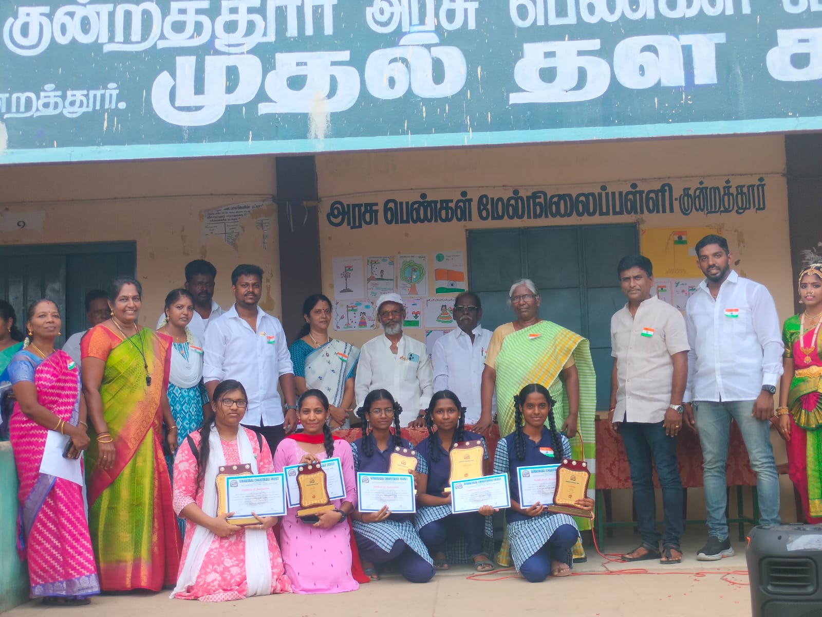 இன்று குன்றத்தூர் சேக்கிழார் அரசினர் ஆண்கள் மேல்நிலைப்பள்ளி மற்றும் அரசினர் பெண்கள் மேல்நிலைப் பள்ளியில் நடைபெற்ற 79-ஆம் ஆண்டு சுதந்திர தின விழாவில் கலந்துகொண்டு நமது சிறகுகள் தொண்டு நிறுவனம் சார்பாக கடந்த கல்வியாண்டில் 10, 11 மற்றும் 12-ஆம் வகுப்பில் பள்ளி அளவில் முதல் மூன்று இடங்களை பிடித்த மாணவ, மாணவிகளுக்கும், பாடப்பிரிவுகள் முதலிடம் பிடித்த மாணவ, மாணவிகளுக்கும் , ஆசிரியர்களுக்கும் சான்றிதழ் மற்றும் நினைவு பரிசு வழங்கி கௌரவிக்கப்பட்டது என்பதை மகிழ்ச்சியுடன் தெரிவித்துக் கொள்கிறோம்.