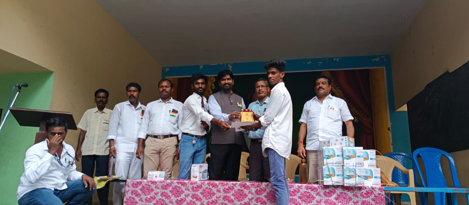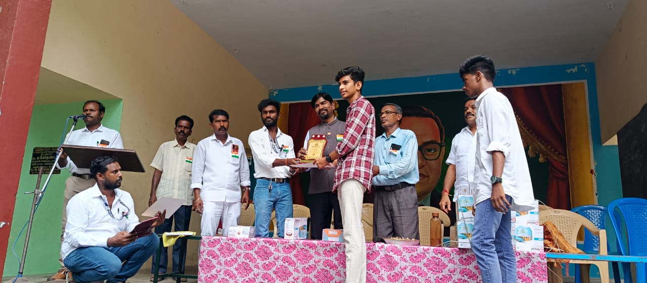 K. தேவி (11ஆம் வகுப்பு) என்ற மாணவி, மருத்துவ செலவிற்காக 2000 ரூபாய் காசோலை வழங்கப்பட்டது