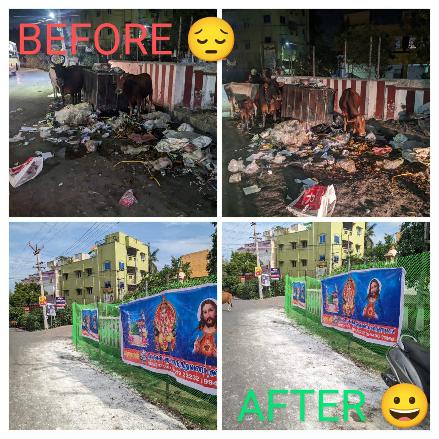 குன்றத்தூர் மின்சார அலுவலகம் எதிரில் (EB office) பெருமாள் கோவில் அருகில் குப்பைகள் கொட்டுவதை தடுக்கும் வகையில் குன்றத்தூர் நகராட்சி மற்றும் நமது சிறகுகள் தொண்டு நிறுவனத்தின் சார்பாக இன்று தூய்மை பணியாளர்களின் மூலம் அந்த இடத்தை சுத்தப்படுத்தி வேலி அமைக்கப்பட்டது மற்றும் வரும் காலங்களில் அங்கு குப்பை கொட்டாதவாறு நமது சிறகுகள் தொண்டு நிறுவனம் மூலம் எம்மதமும் சம்மதம் என்ற மூன்று மத கடவுள்களின் புகைப்படம் பொருந்திய போஸ்டர் அந்த வேலியில் பொருத்தப்பட்டது.