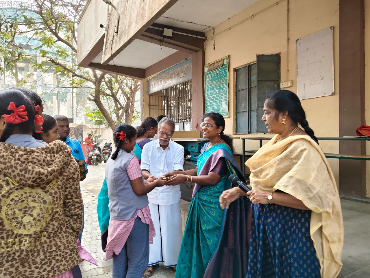 K. தேவி (11ஆம் வகுப்பு) என்ற மாணவி, மருத்துவ செலவிற்காக 2000 ரூபாய் காசோலை வழங்கப்பட்டது